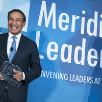 Following his fireside chat, Meridian President and CEO Ambassador Stuart Holliday presented Mr. Munoz with the Meridian Corporate Leader Award, which recognizes exceptional business leaders whose vision and management abilities have increased international collaboration, made societal impact a corporate priority, and helped his/her company succeed in a global marketplace.